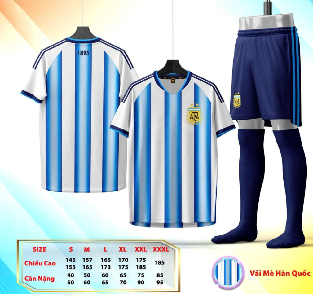 Thiết kế được xây dựng từ cảm hứng lá cờ Argentina, với các mảng sọc xanh – trắng quen thuộc nhưng được làm mới theo hướng hiện đại hơn. Nhờ vậy, chiếc áo vẫn giữ trọn “DNA” truyền thống của La Albiceleste, đồng thời nhìn thời trang, trẻ trung và dễ phối đồ. Đây cũng là đội bóng từng 3 lần vô địch World Cup, nên mặc lên là thấy “có câu chuyện” liền.